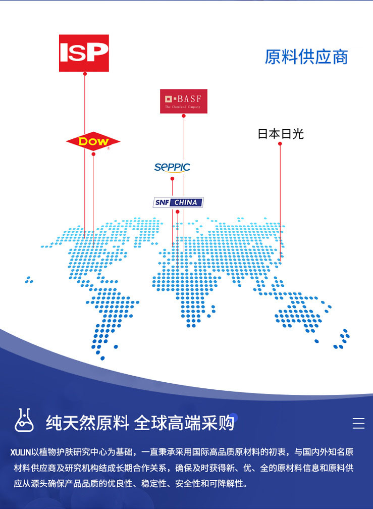 采用進口原料,國際科研,締造國際品質!緊隨國際市場的主流信息,不斷運用新的科學技術改造自己的產品,為客戶提供有市場價值的技術與新產品配方。